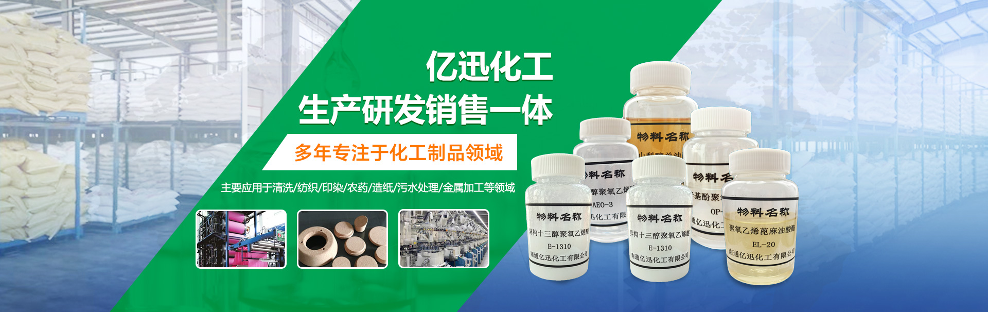南通億迅化工有限公司是一個集科貿一體的現代化企業。主要經營界面活性劑產品:聚乙二醇、聚丙二醇、無規/嵌段聚醚、聚乙二醇單(雙)酯、醇醚磷酸酯(鉀鹽)、司盤、吐溫、勻染劑、乳化劑、滲透劑、消泡劑、洗滌劑...